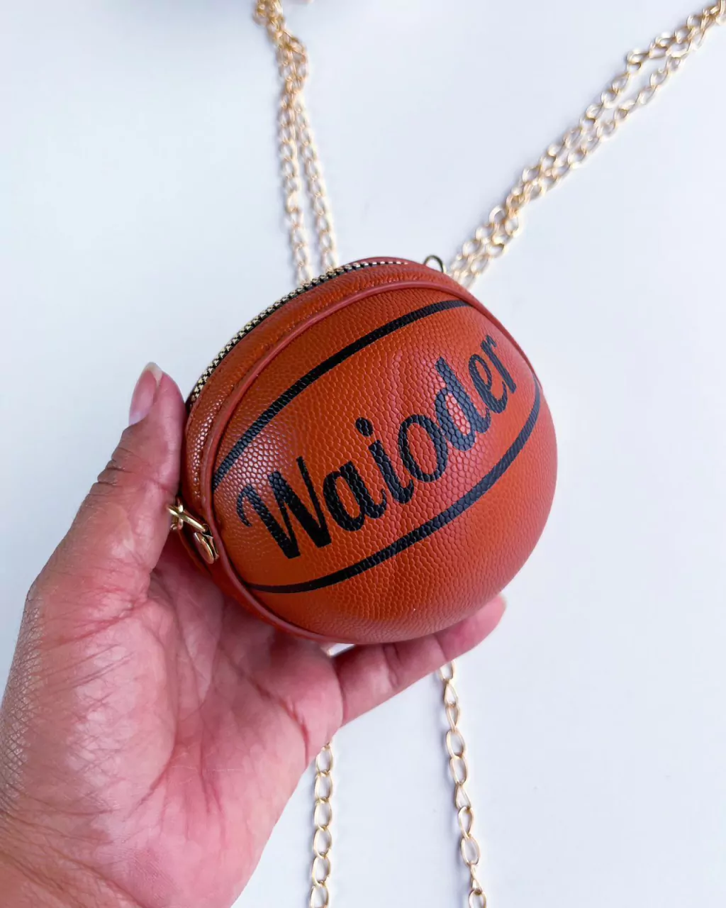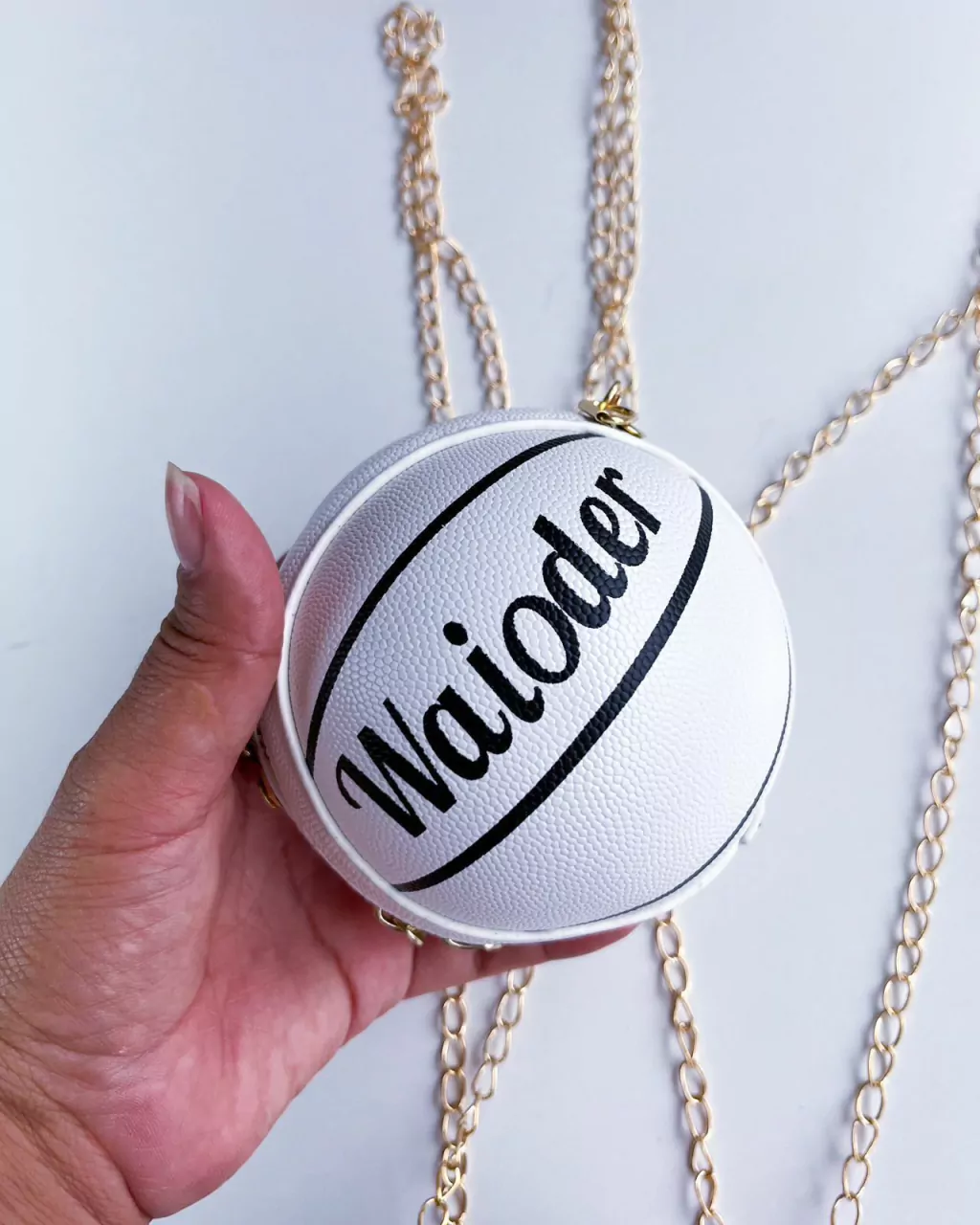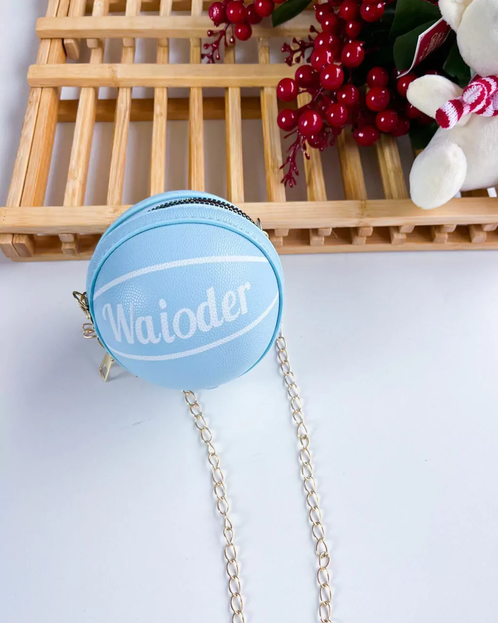 Acompanha alça de metal e pompom mega fofo.