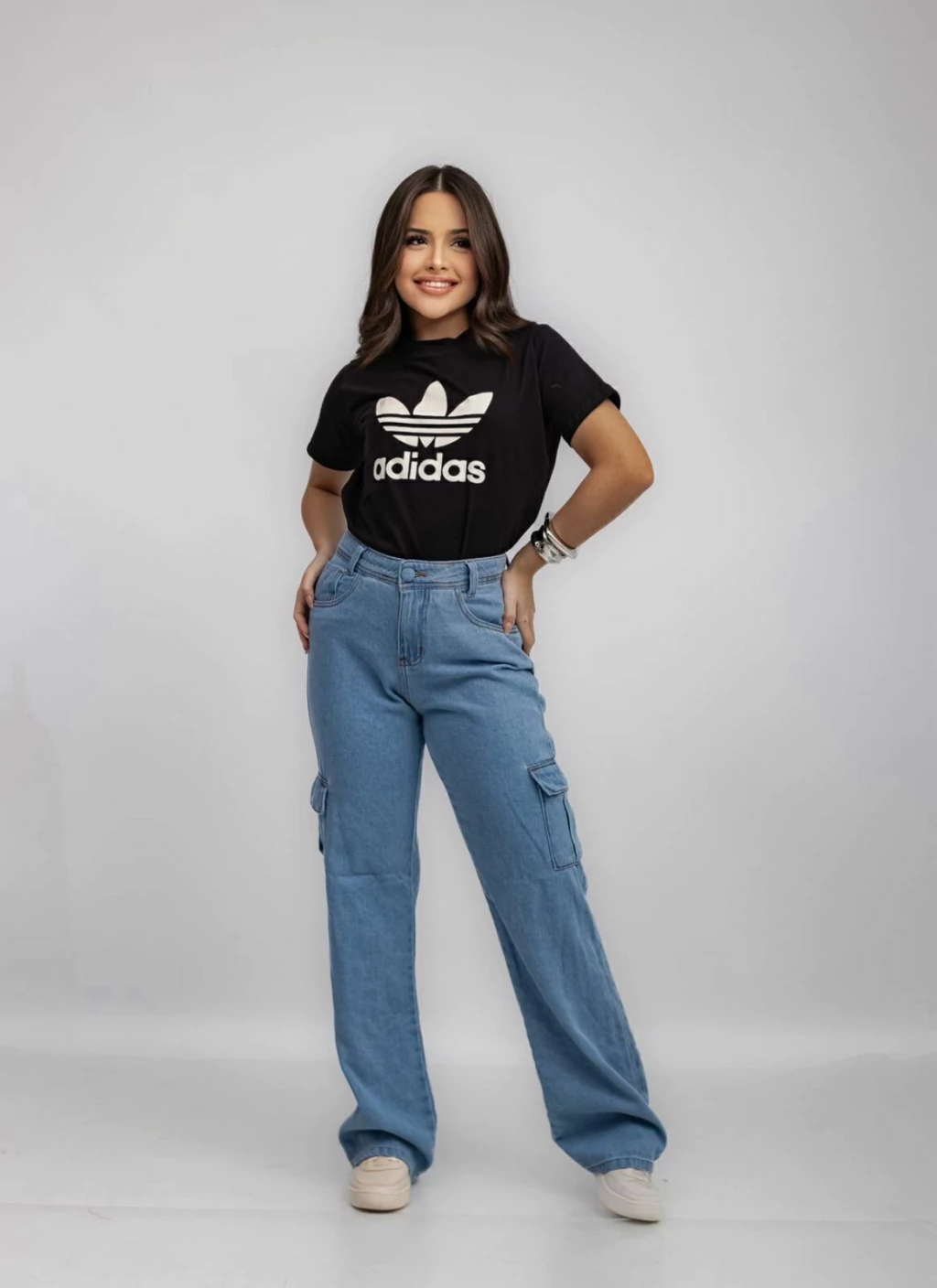 CALÇA CARGO JEANS COM REGULAGEM, 100% ALGODÃO