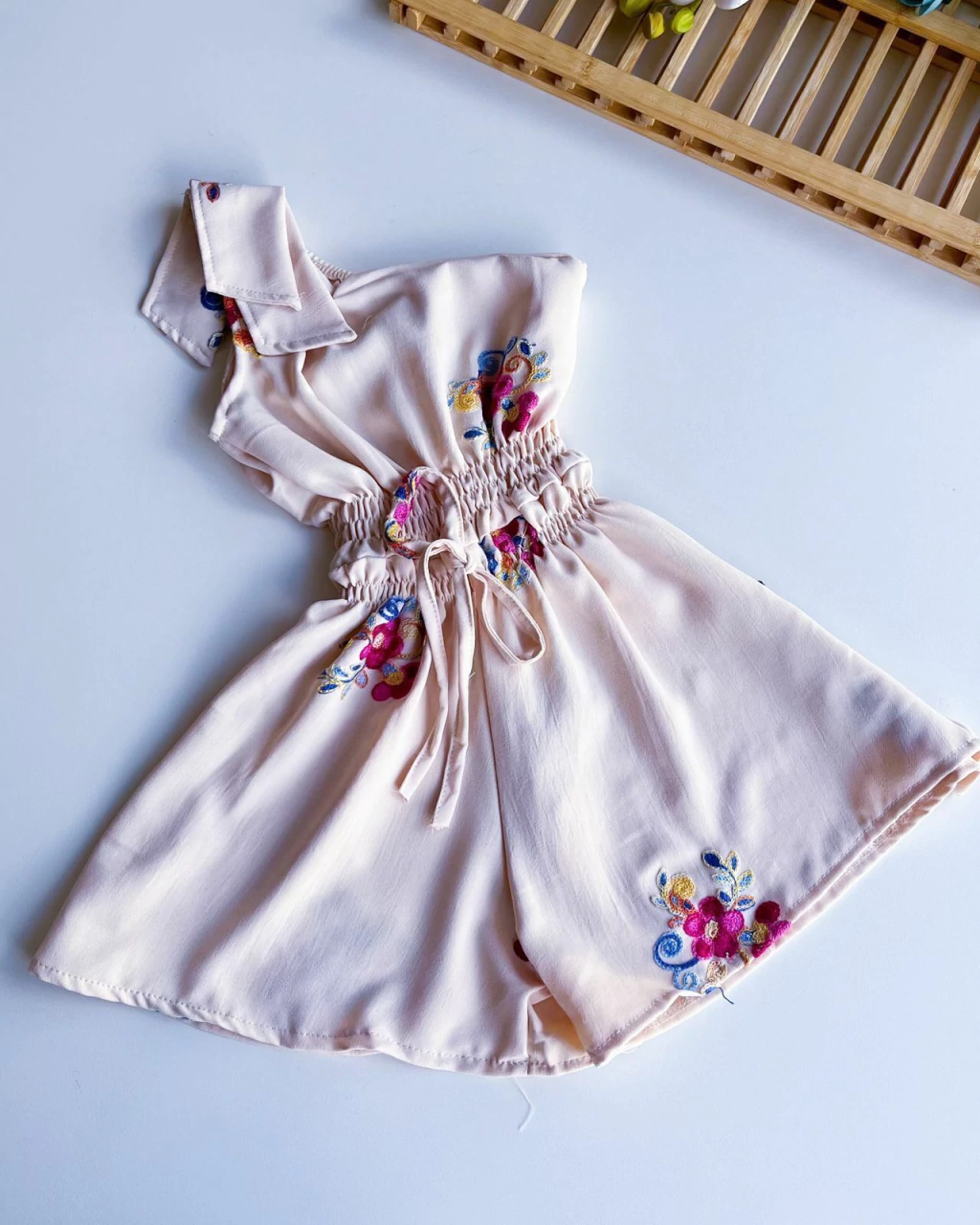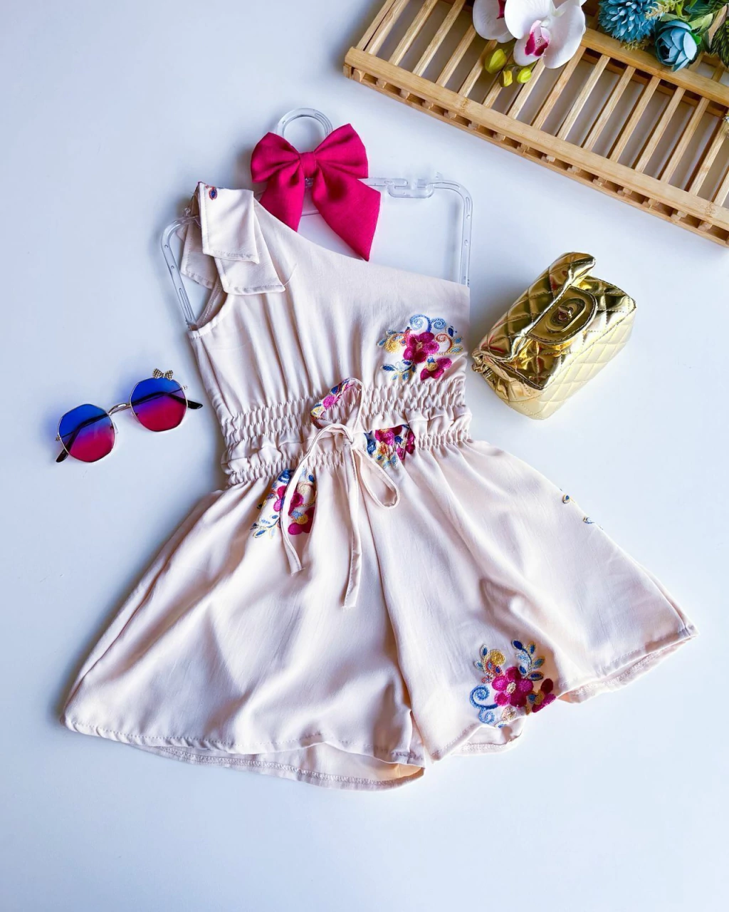 Descrição: Macaquinho tecido crepe, detalhe na manguinha dobradinha, com lapelas de bolsinhos falso frontais, fechamento em ziper destacavel até na cintura, todo na estampinha super alegre, parte de trás todo lisinho com elástico na cintura deixando ainda mais acinturadinho, modelinho perfeito para compor vários looks. Nosso macaquinho é a definição de perfeição e fofura.